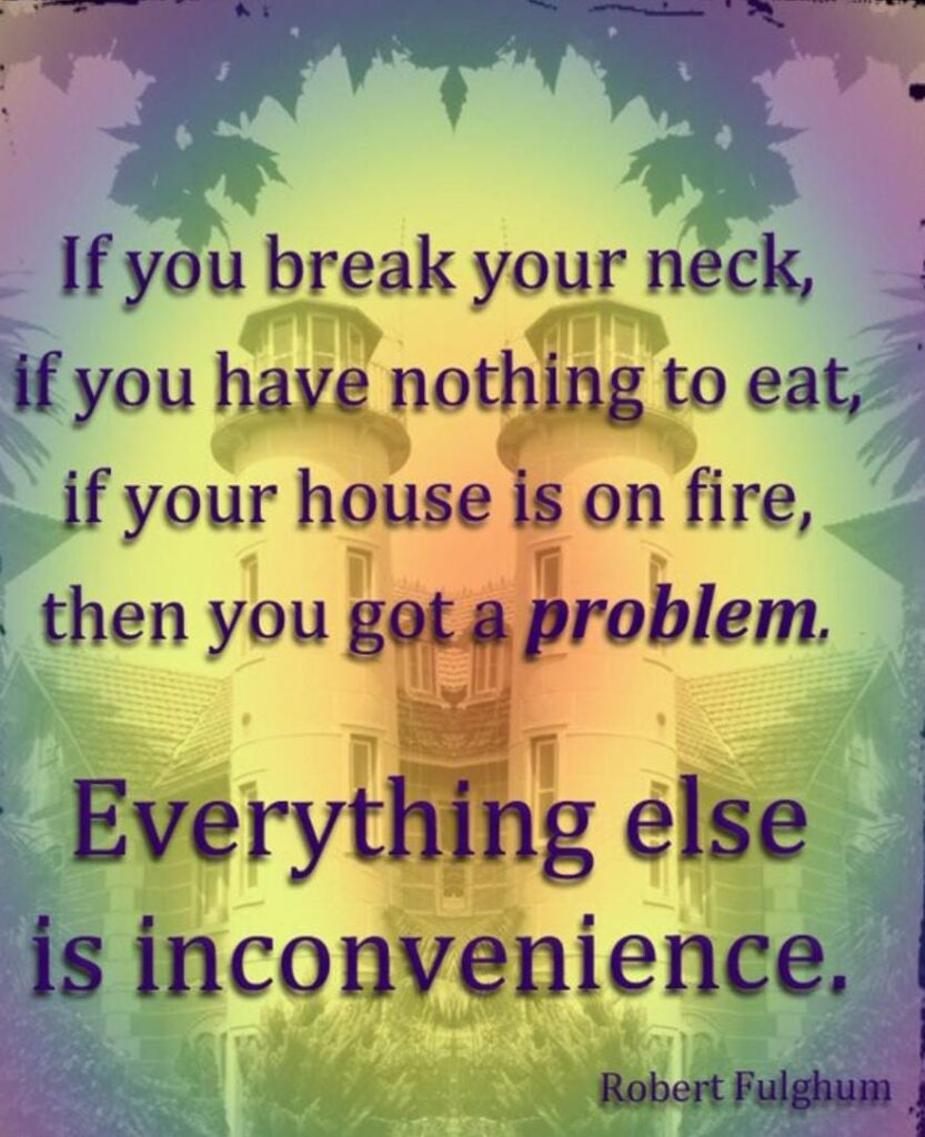 One of life’s best coping mechanisms is to know the difference between an inconvenience and a problem.