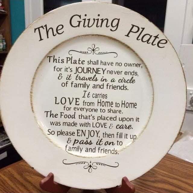 The heartwarming tradition of ‘The Giving Plate’ is that you bake a treat and present it to someone on The Giving plate.
